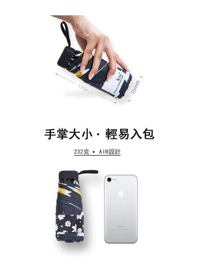 身形小巧,有多小,一個手機的大小,裝在包包里,不影響你的包包美感,但是你可別它小,撐開了它可是的大。