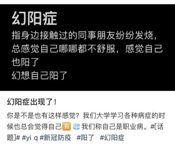 上述專家表示,從心理學(xué)專業(yè)來說當(dāng)然不存在“幻陽癥”,“幻陽”的出現(xiàn),反映的其實是大家在面對短期內(nèi)疫情發(fā)展迅速變化,心理上出現(xiàn)的不適應(yīng)狀態(tài)。調(diào)侃“幻陽”的背后,是大家對陽了之后未知情況的焦慮:青少年擔(dān)心影響學(xué)業(yè)、中年人擔(dān)心工作進(jìn)度受影響的同時還十分擔(dān)心家中老人孩子感染了怎么辦、老年人擔(dān)憂對身體狀況的危害等等。