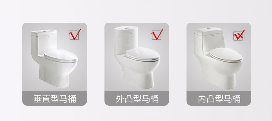 確認(rèn)馬桶的尺寸要求,形狀方面常見(jiàn)的是弧形馬桶,方形和圓形馬桶與目前主流的馬桶蓋形狀上不匹配。還有的馬桶的水箱和座圈之間的連接處也有凸起或較大的弧形,這會(huì)影響安裝。