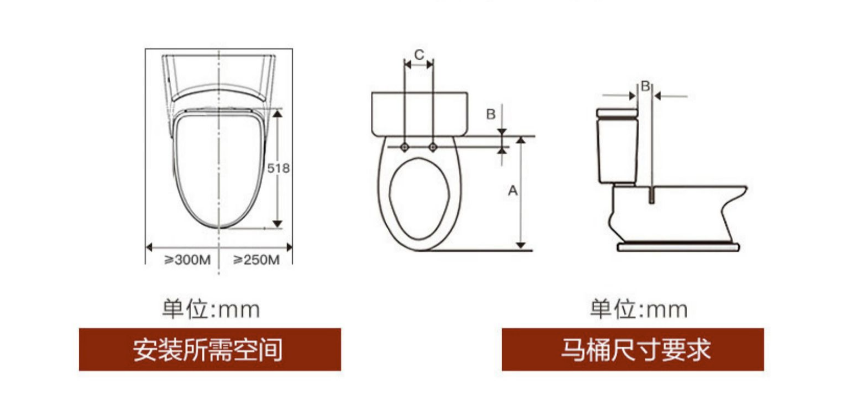 不管挑選什么品牌的智能馬桶蓋,這幾個(gè)尺寸都必須要測(cè)量??粗匾木褪?A 尺寸和 B 尺寸,直接決定了能不能安裝。
