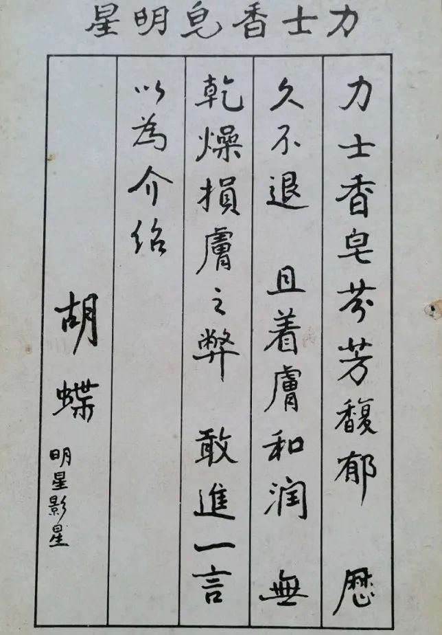這件事之后,胡蝶就成為商家爭搶的大明星:力士、先施等都請她拍過廣告。其中,力士香皂的廣告詞寫得尤為有趣,從明星的親身體驗分享出發(fā),夸贊了香皂的氣味芬芳、留香時間長,特別強調它的細膩滋潤,不會令皮膚干燥……和我們現(xiàn)在對清潔品的需求,別無二致。