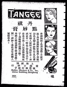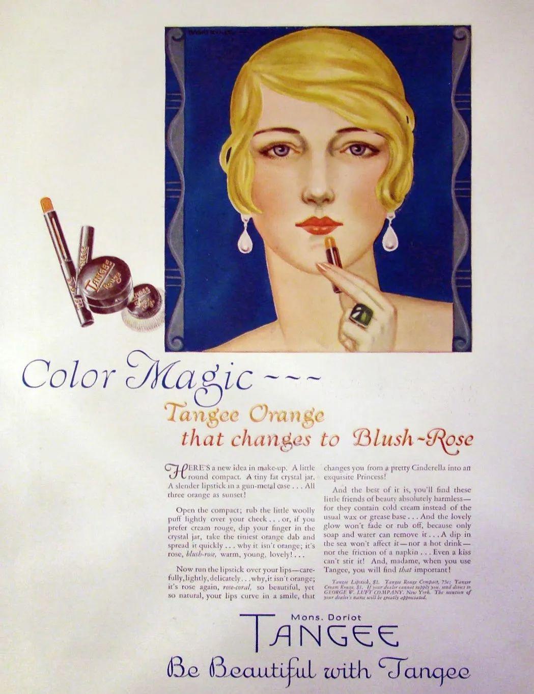 右:1925年丹琪口紅發(fā)表在Vogue雜志上的廣告