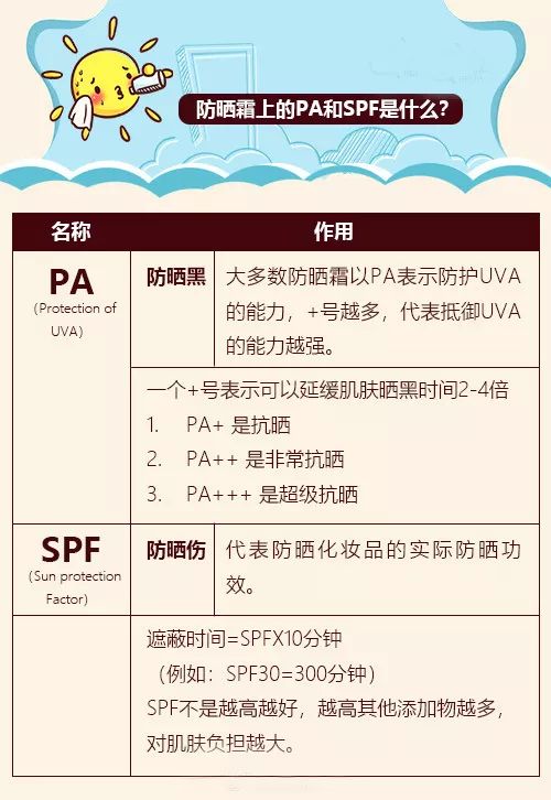 所以一般的防曬產(chǎn)品上都會標有SPF和PA兩個數(shù)值,SPF是產(chǎn)品對UVB的防御能力,是防曬傷的;