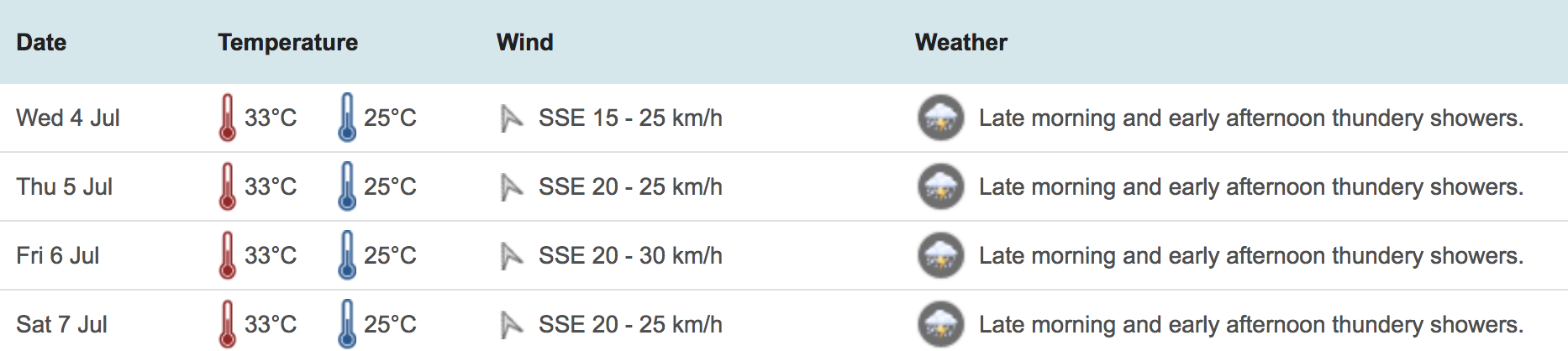 未來兩個星期的每日平均氣溫將介于25和34度之間,其中幾天的高溫可能達到35度!