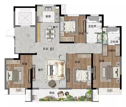 D1戶型 | 四房兩廳兩衛(wèi) | 145.3㎡
