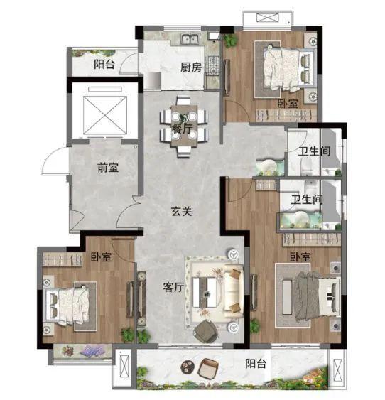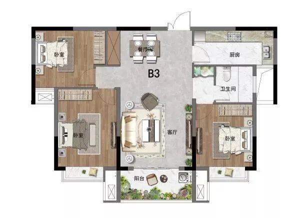 B3戶型 | 三房兩廳一衛(wèi) | 108.06㎡