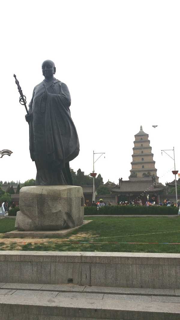古人曾留下“驅(qū)山晚照光,雁塔晨鐘在城南”的詩句。作為關(guān)中八景之一的大雁塔高高聳立在西安市南郊慈恩寺內(nèi),距市中心約4公里,是我國的佛教名塔之一。按照印度佛教傳說,當初佛教有大乘與小乘兩派,小乘佛教不忌葷腥。有一天,正是菩薩布施日,一座小乘寺院的和尚卻買不到肉下飯。這時天空中一群大雁飛過,一個和尚望著雁群自言自語:“今日增房無肉吃,大慈大悲的菩薩一定不會忘記這是什么日子?!痹捯粑绰?,領(lǐng)頭的大雁便折翅墜地。于是全寺和尚大驚失色,認為這定是菩薩顯靈。他們就在大雁墜地處建造石塔,并戒絕葷腥,改信大乘佛教。因此,佛塔又稱大雁塔。 玄奘就是慈恩寺內(nèi)的第一任住持方丈。