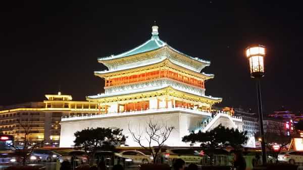 18:00游覽結(jié)束回返西安市內(nèi),出華清池馬路對面就是車站,仿佛打仗一般成功登陸914路車,站了一個半小時到達西安火車站。在市內(nèi)游有一點比較好,想去哪個景點就隨意找個公交車站,看站牌肯定會有一班車途徑這個景點的。鼓樓下車,夜晚的鐘鼓樓比白天要美的多!燈火通明五光十色,在喧囂的車海、鼎沸的人聲中靜怡的矗立在那里,讓人沉迷感嘆。當然,鼓樓后面的回民街更加讓人迷醉,各種美味的小吃,干果,點心,飲品……一天時間吃不完。 鐘樓和鼓樓是古代中國城市的特有建筑。鐘與鼓本是中國早出現(xiàn)的打擊樂器,它的誕生至少有3000年以上的歷史。初作為祭禮、朝儀、娛神中的禮器和樂器。大約自春秋時期,也就是公元前八世紀開始用于軍事指揮。古代中國城市兼有軍事城堡性質(zhì),除城市四周構(gòu)筑城墻,挖掘城壕,設(shè)置吊橋外,與之配套的還需要在城市中心修筑鐘鼓樓作為指揮中樞。平時以晨鐘暮鼓報告時辰,定時啟閉吊橋,緊急狀態(tài)是用以報警戒嚴,指揮城防。這種嚴密的城市防御系統(tǒng)在明代發(fā)展到頂峰。西安是明代西北軍政重鎮(zhèn),它的鐘樓和鼓樓無論從建筑規(guī)模、歷史價值或藝術(shù)價值各方面衡量,都居全國同類建筑之冠。