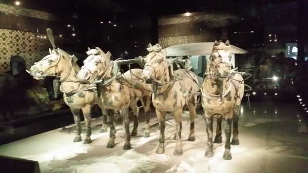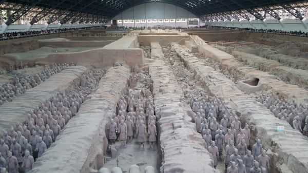 秦兵馬俑,在古今中外的雕塑是上是的,它惟妙惟肖地模擬軍陣的排列,生動的再現(xiàn)了秦軍雄兵百萬、戰(zhàn)車千乘的宏偉氣勢?,F(xiàn)在已發(fā)掘出三個俑坑,每個俑坑中都有兵馬俑,共八千多個。一號坑多,兵馬俑近六千多個。