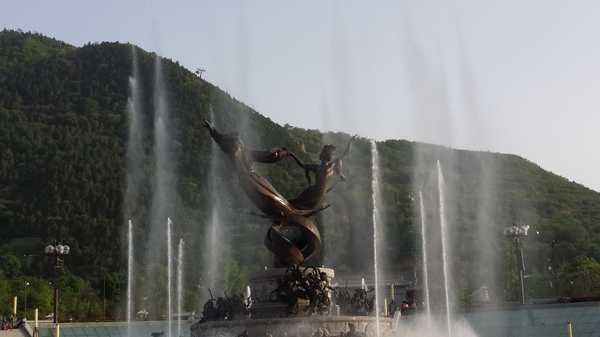 中峰名玉女峰.傳說春秋時,華山隱士蕭史,善吹洞簫,優(yōu)美的簫聲博得秦穆公的小女兒弄玉的愛慕,使她放棄了奢華舒適的宮廷生活,隨簫史在此隱居,多年后二人修煉成仙乘鳳而去,山上許多名勝也因此得名.有玉女洗頭盆,舍身樹等。