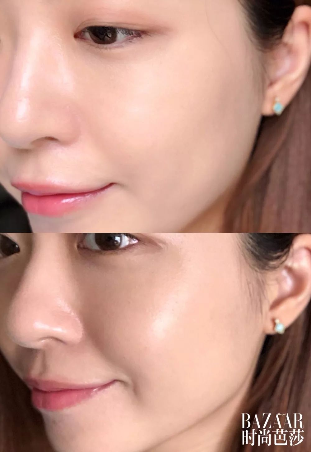 持妝6小時鼻翼和下巴有出油,但妝依然是水潤光澤??!氧化暗沉現(xiàn)象也并不,妝感輕薄對皮膚無負(fù)擔(dān),痘痘肌也適合用的一款底妝。