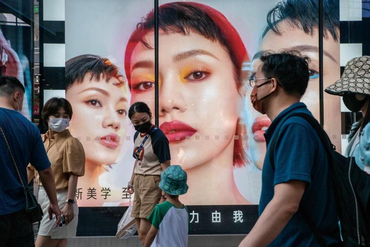 2022年7月5日,北京街頭的化妝品廣告。/視覺中國