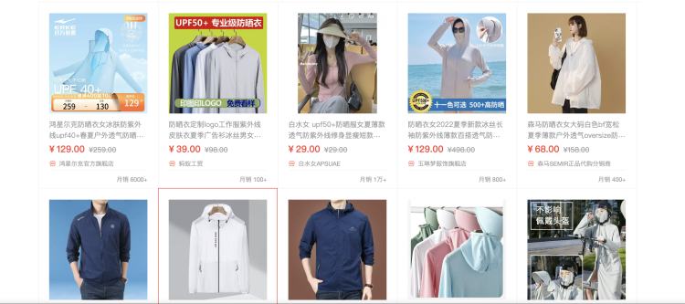B站UP主“這個月”說:“當(dāng)你搜索防曬衣時,起初一切都是正常的,后來出現(xiàn)了防曬長袍,于是又出現(xiàn)了五花八門的顏色以及帶著荷葉邊的長袍,后甚至出了‘純欲風(fēng)’長袍。你不理解只露出一雙眼睛怎么能體現(xiàn)純欲,但身邊的人都開始這樣穿了?!?/p>