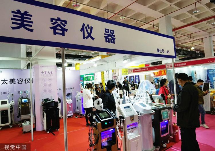 2021年4月20日,第三十七屆北京國際美容化妝品博覽會(春季)上的美容儀器展臺。/視覺中國