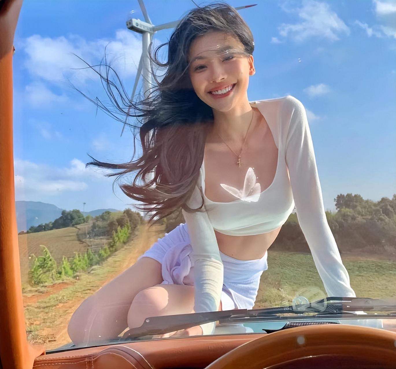 在另一張照片中,易夢(mèng)玲趴在車窗上,人從車窗戶口伸了出去。給我們展現(xiàn)了一個(gè)性感的后背,從后面看,她的身形曲線極美,腰上和腿上都沒(méi)有多余的贅肉。
