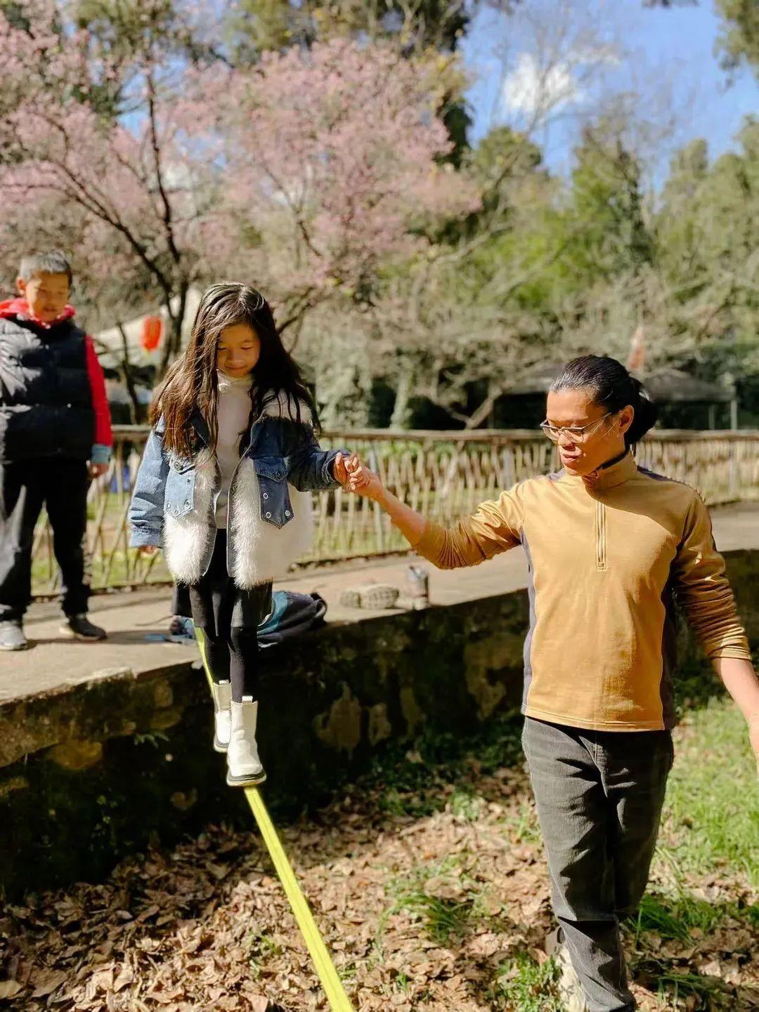 河子在村里教小朋友攀樹(shù)和過(guò)扁帶