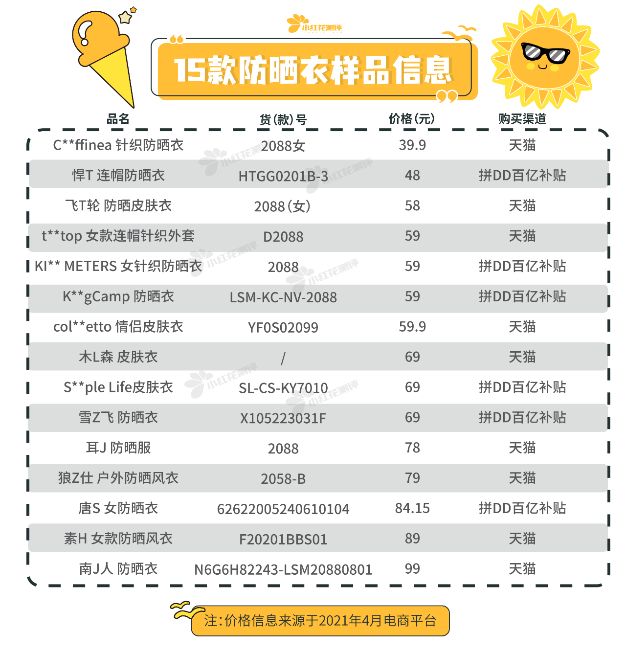 因此,花爸重新選了15款百元以下的成人防曬衣,進行測評。其中9款來自“天貓”,6款是“拼多多”百億補貼款。
