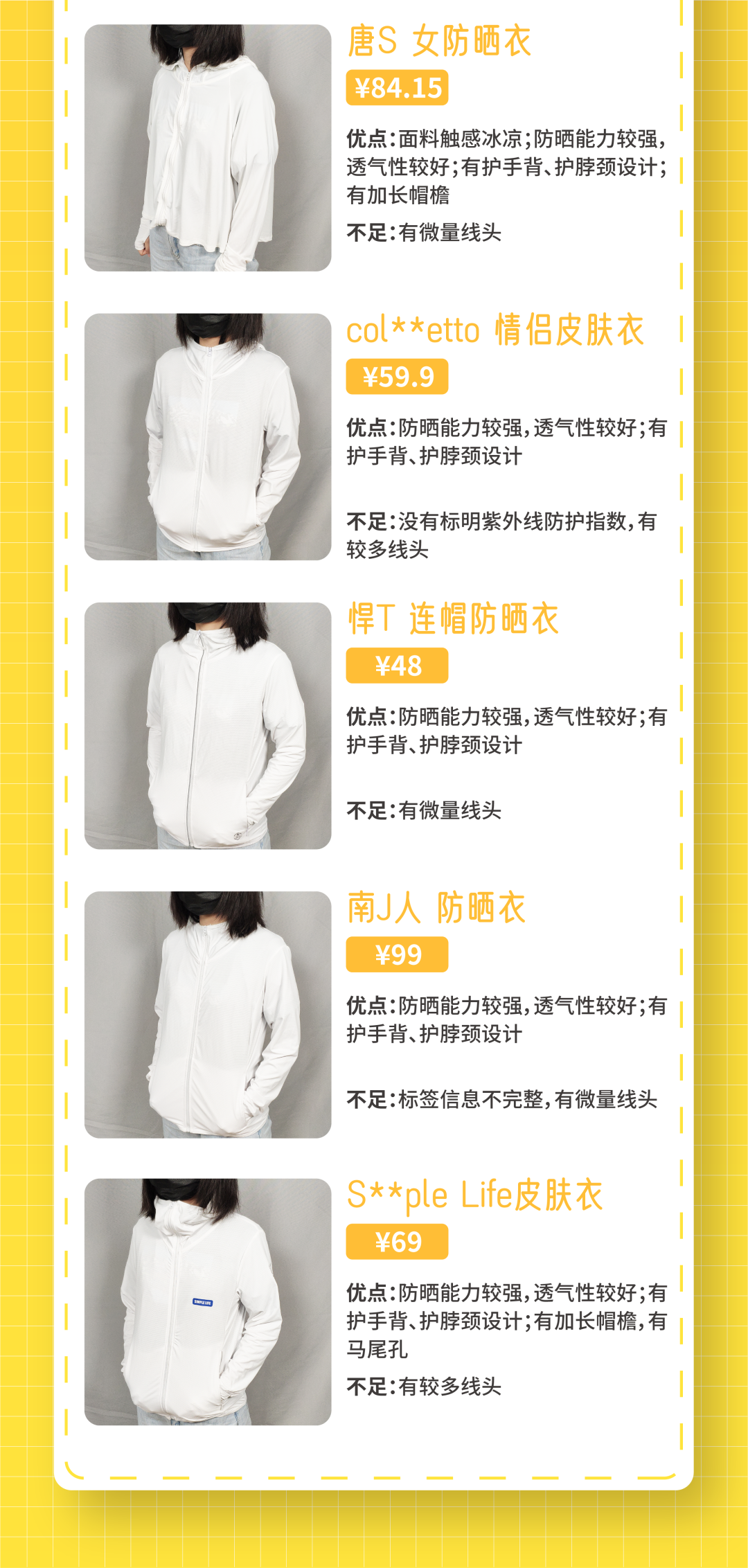“皮膚衣”型的防曬衣,在去年的測試中表現(xiàn)較差,因此未納入本次測評。