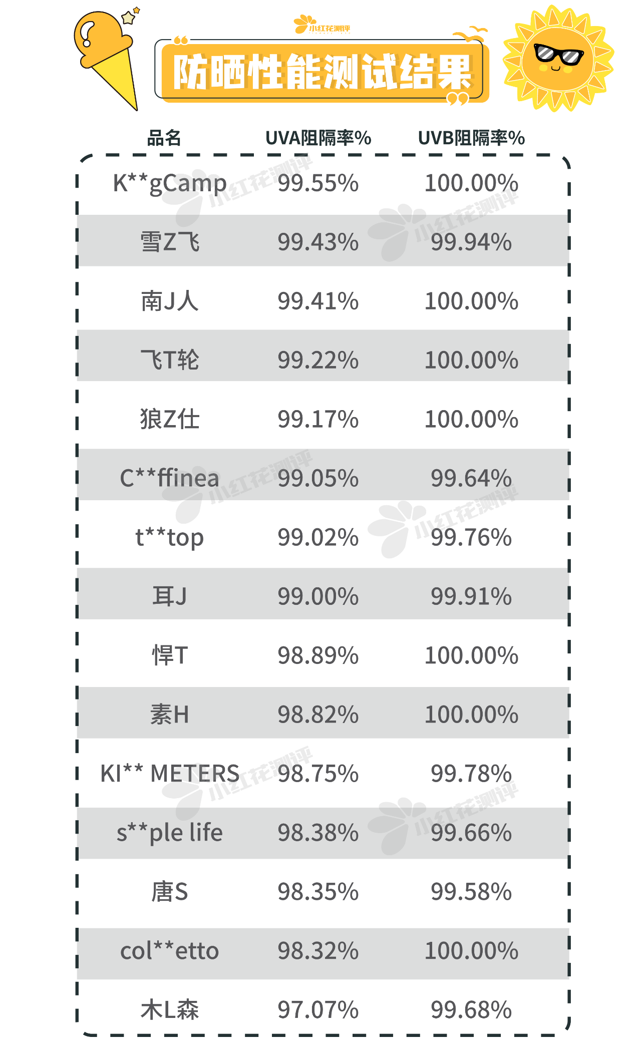 2.K**gCamp、KI** METERS、col**etto、雪Z飛、南J人沒有標明紫外線防護指數(shù)。