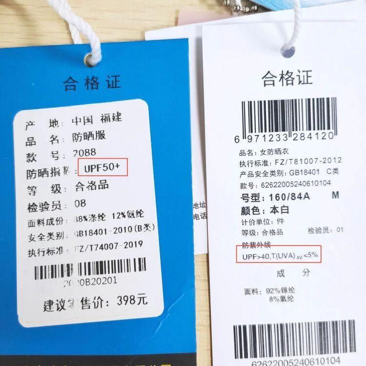 檢查防曬衣的吊牌、耐久性標簽,上面要包括名稱、款號、材質信息、執(zhí)行標準、類別等,才算是規(guī)范的標示。