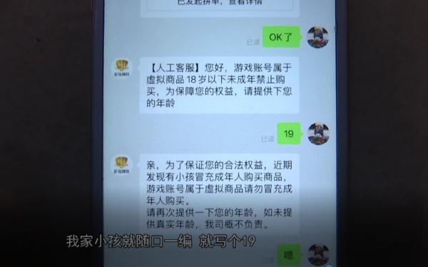 祁大哥告訴記者,賣家問孩子年齡,孩子隨口一編是19歲,然后賣家就說確認賬號購買,這個是成人號,不會有未成年人防沉迷,沒有游玩時間限制。