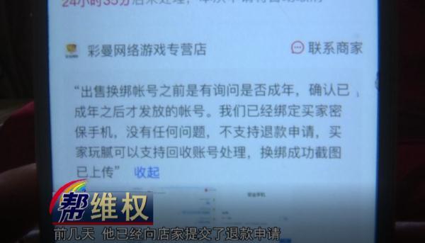 記者在祁大哥提供的訂單頁面上看到,前幾天,他已經(jīng)向店家提交了退款申請,但店家表示,出售賬號前,他們通過問詢的方式,確認過對方已經(jīng)成年,所以拒絕了退款申請。