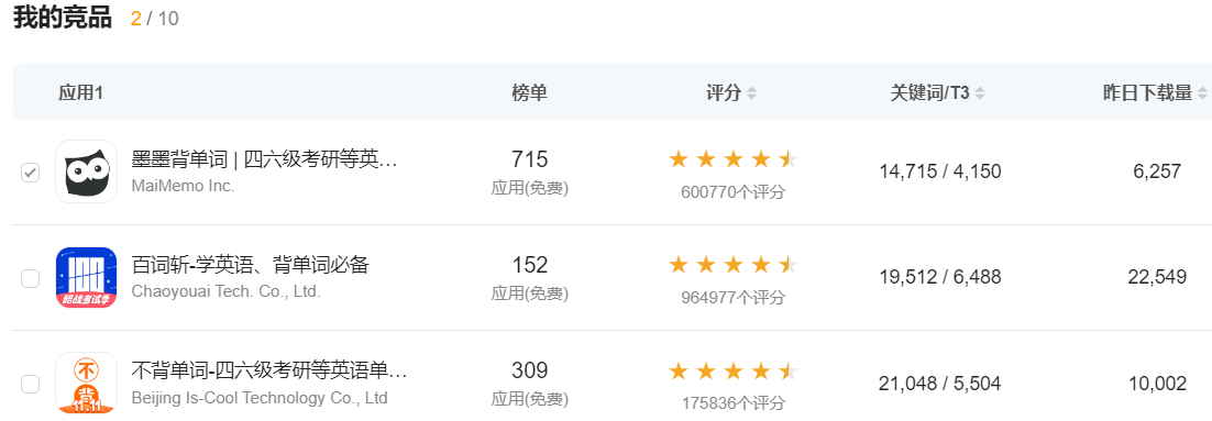 圖1 墨墨背單詞競品展示