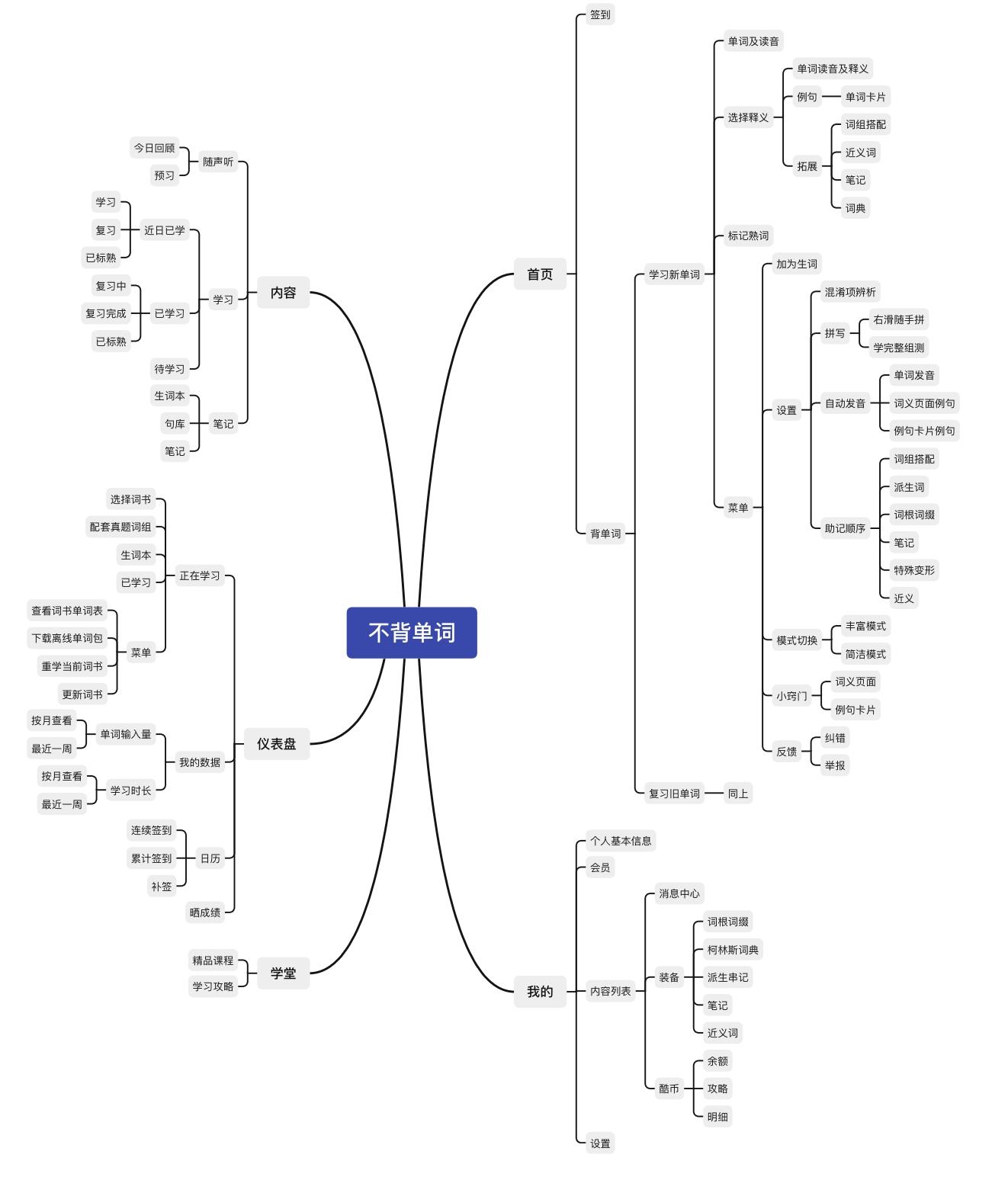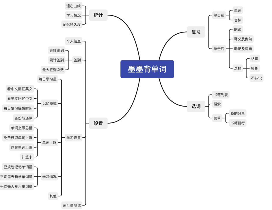 圖2 墨墨背單詞部分功能結(jié)構(gòu)圖
