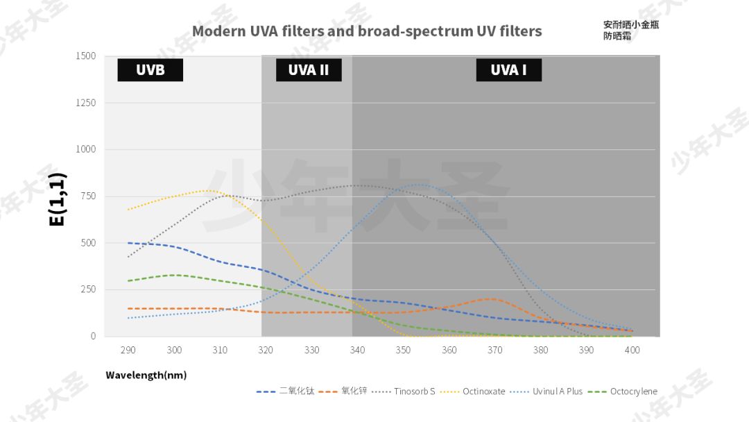 雅漾這款防曬屬于物化結(jié)合型,防曬劑用了奧克立林、Tinosorb M、二氧化鈦、阿伏苯宗、Tinosorb S,從光譜上看,防曬力也是比較強的。