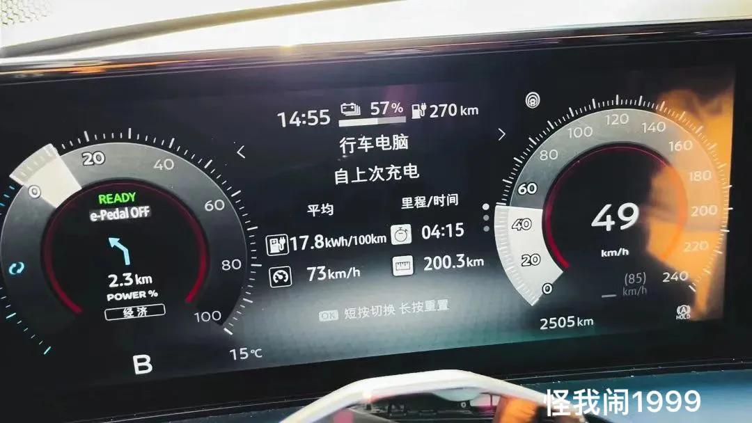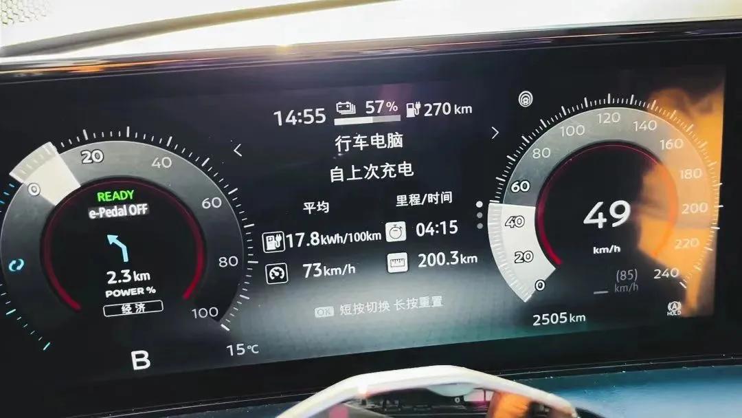不過(guò)當(dāng)我看到99%電量的表顯續(xù)航只有434km時(shí),心里也有“咯噔”一下。但我了解到的是,這個(gè)數(shù)據(jù)并不代表車輛實(shí)際可行駛里程,艾睿雅是根據(jù)駕駛員此前的使用習(xí)慣來(lái)推算出可能的續(xù)航能力,給車主更真實(shí)的參考--而作為一臺(tái)試駕車,這臺(tái)艾睿雅之前的經(jīng)歷自然不太尋常,尤其我在清零歷史記錄時(shí)看到平均時(shí)速在70km/h以上,也就理解它的表顯續(xù)航不夠豐滿的事實(shí)。