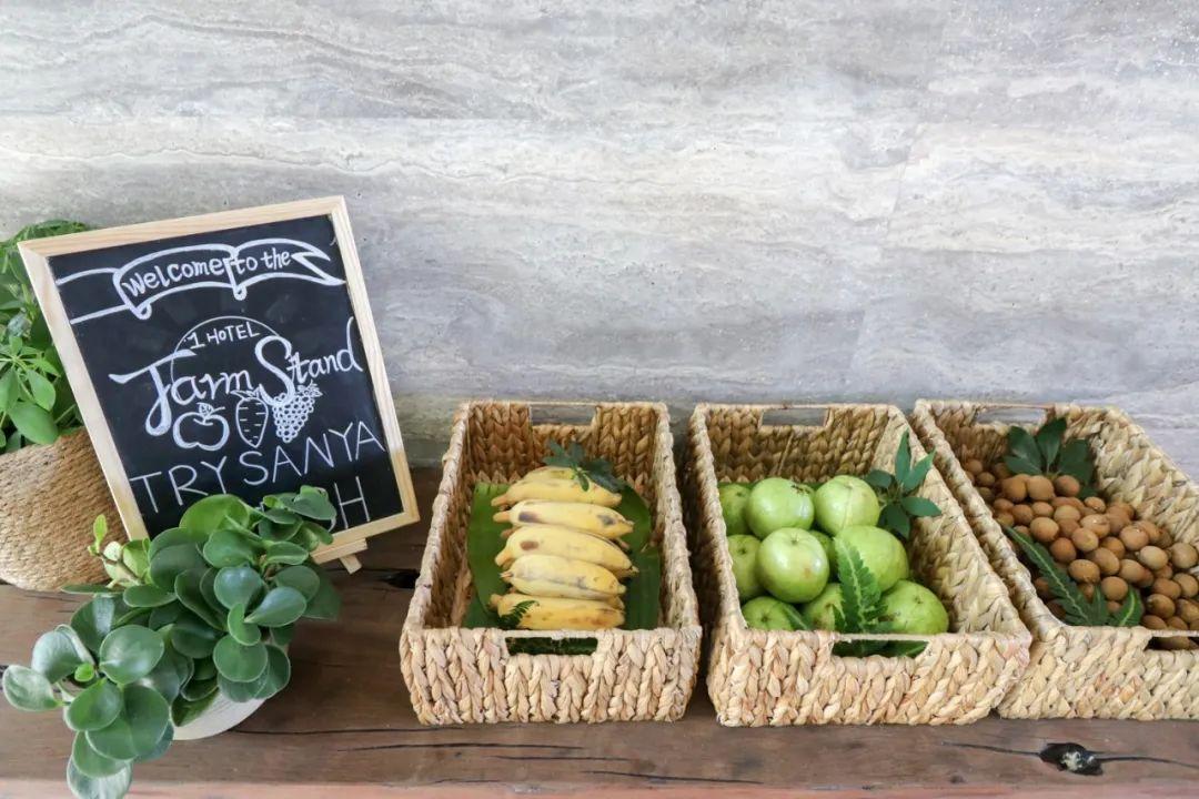 大堂入口的右手邊還有一個(gè)農(nóng)果站,是1 Hotels的品牌特色。所提供的時(shí)令水果或來自當(dāng)?shù)剞r(nóng)民、供應(yīng)商,或來自距酒店10分鐘車程,面積達(dá)18萬m2的自營農(nóng)場陽光18°,只要是住店客人每天都能免費(fèi)享用。
