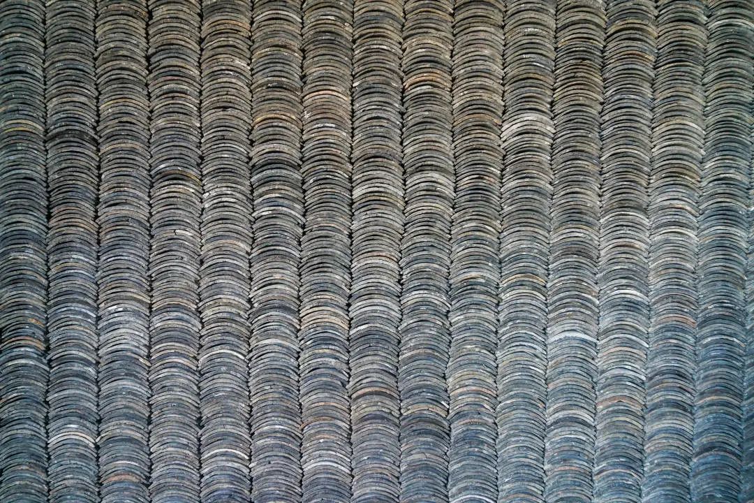 除了大興安嶺的白樺樹,酒店還回收了來自湖北黃岡紅安縣傳統(tǒng)民居的屋瓦,筑起了一道墻。