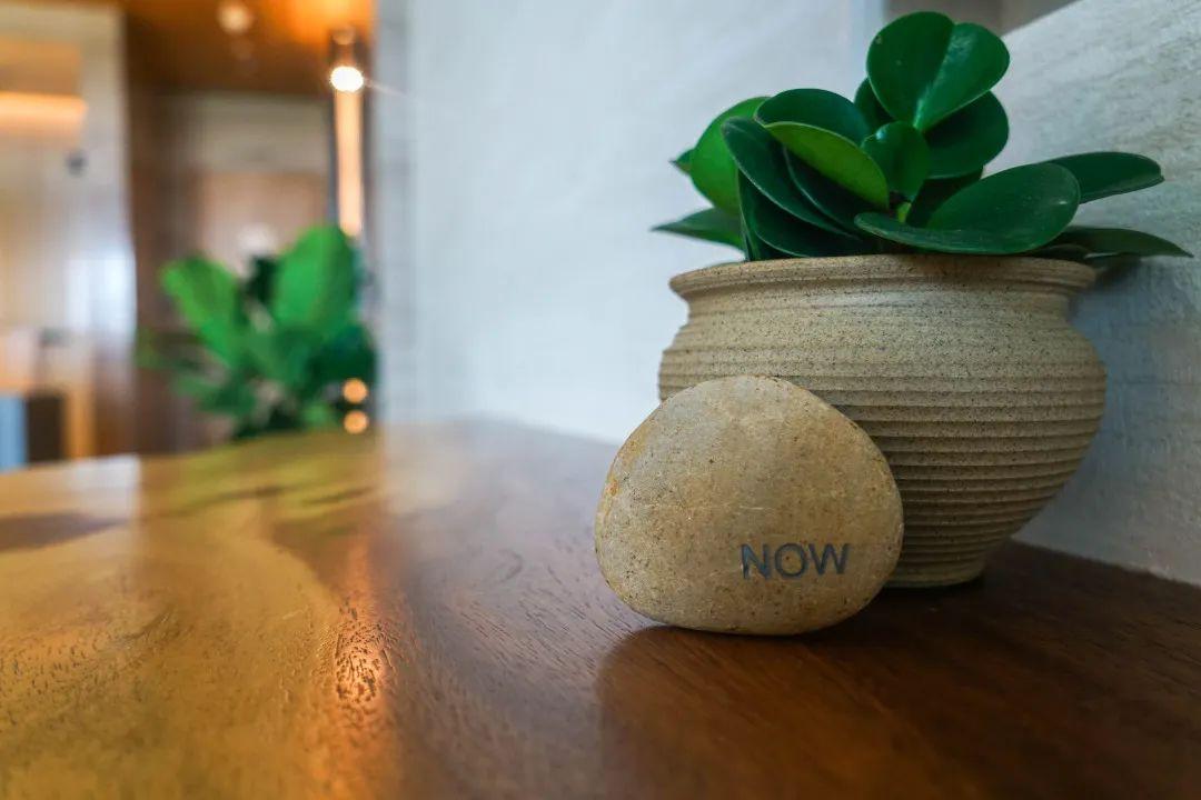 房間還有一些將環(huán)保落到實(shí)處的小細(xì)節(jié),比如代替便簽紙的小黑板,以及石頭做的免打擾。