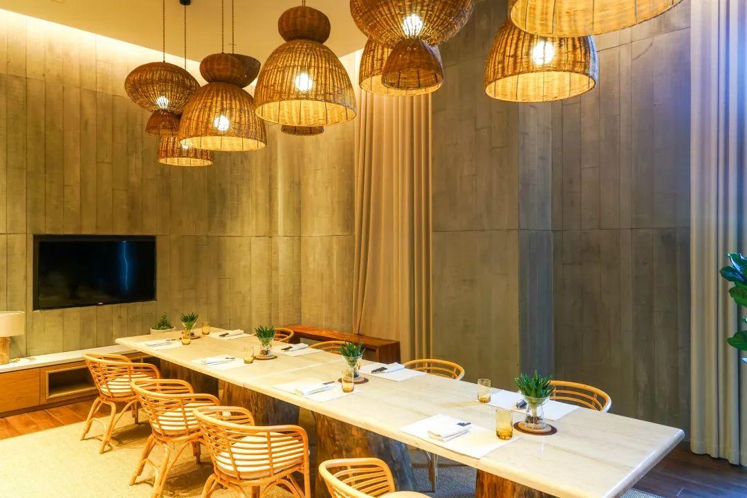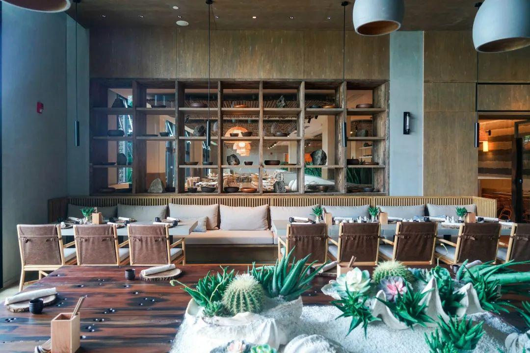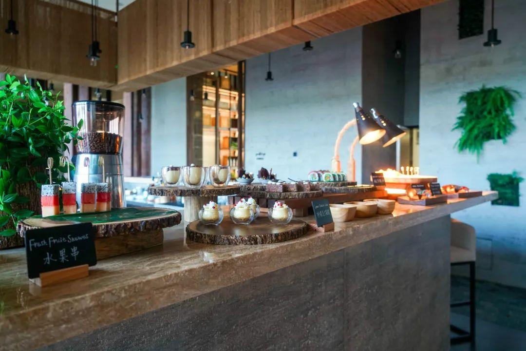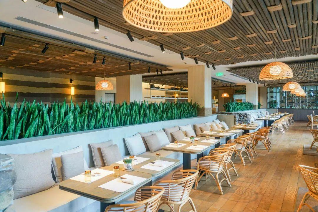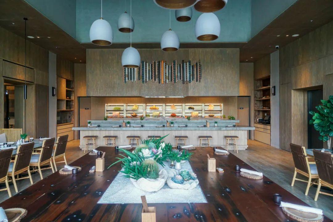 酒店設(shè)有多處各具特色的餐廳和酒吧。壹廚位于主樓1層,室內(nèi)風(fēng)格與酒店的整體基調(diào)相互映,鵝卵石、枯木裝飾、藤編燈飾、麻繩座椅,以及無處不在的綠植等元素均悉數(shù)呈現(xiàn)。