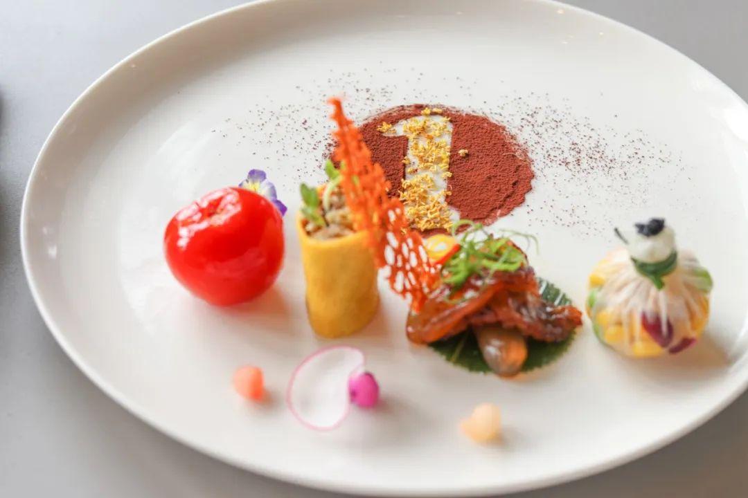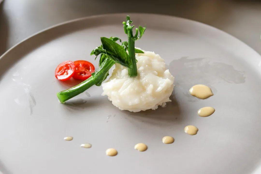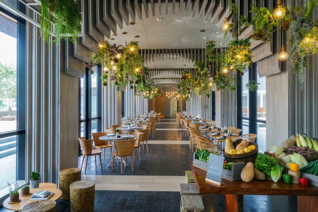在中餐廳綠房子的入口,我還看到了一桌新鮮的蔬菜,與大堂農(nóng)果站的時(shí)令水果一樣,這里的很多蔬菜也都來自酒店的自有農(nóng)場陽光18°。而且不光是綠房子,酒店其他餐廳的一些食材也可能來自這里。