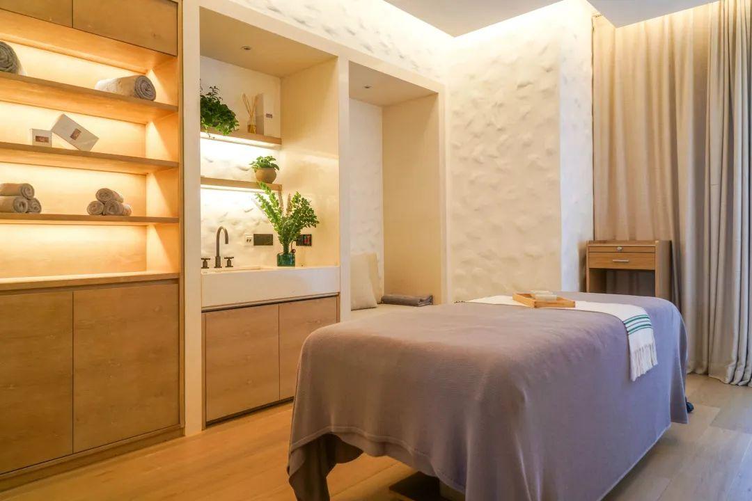 因此,并不是喜歡陌生人在身上按來按去的我決定約個(gè)SPA。1 Hotels的SPA與英國天然有機(jī)品牌Bamford合作。純白的接待處墻面模仿了鵝卵石的紋理。水泥灰的前臺(tái)在燈帶的裝點(diǎn)下散發(fā)著幽光。麻繩團(tuán)成的吊頂星光點(diǎn)點(diǎn)。
