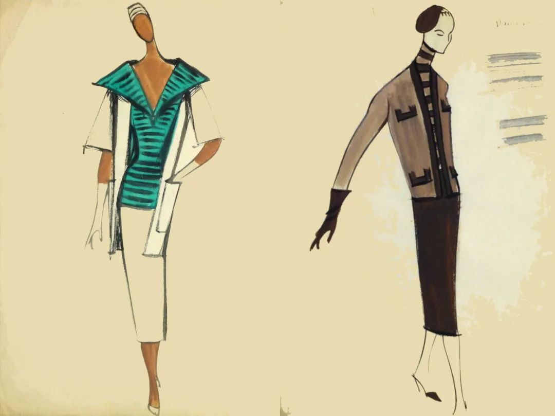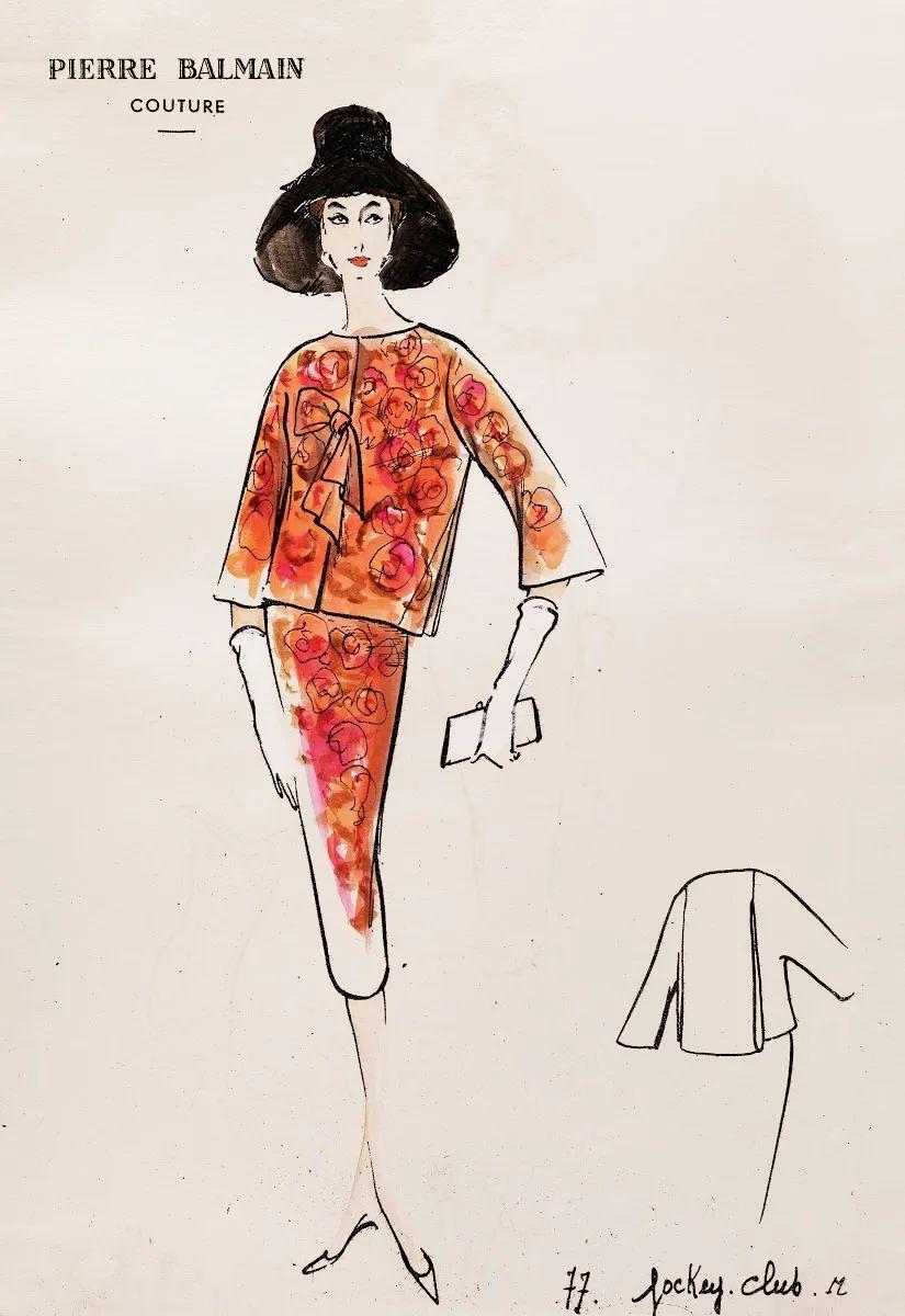 皮埃爾·巴爾曼《Daytime Ensemble》,女裝設(shè)計(jì)速寫,1966年
