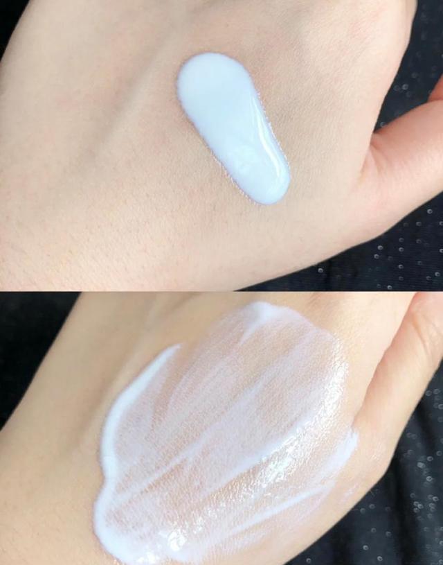 把它擠在手上看起來像是奶油一樣,實際上它的質(zhì)地是很水潤的,幾乎沒有乳化的現(xiàn)象。倒在手上后很容易就推開了,和我以前厚重的防曬乳比起來,簡直太好用了。