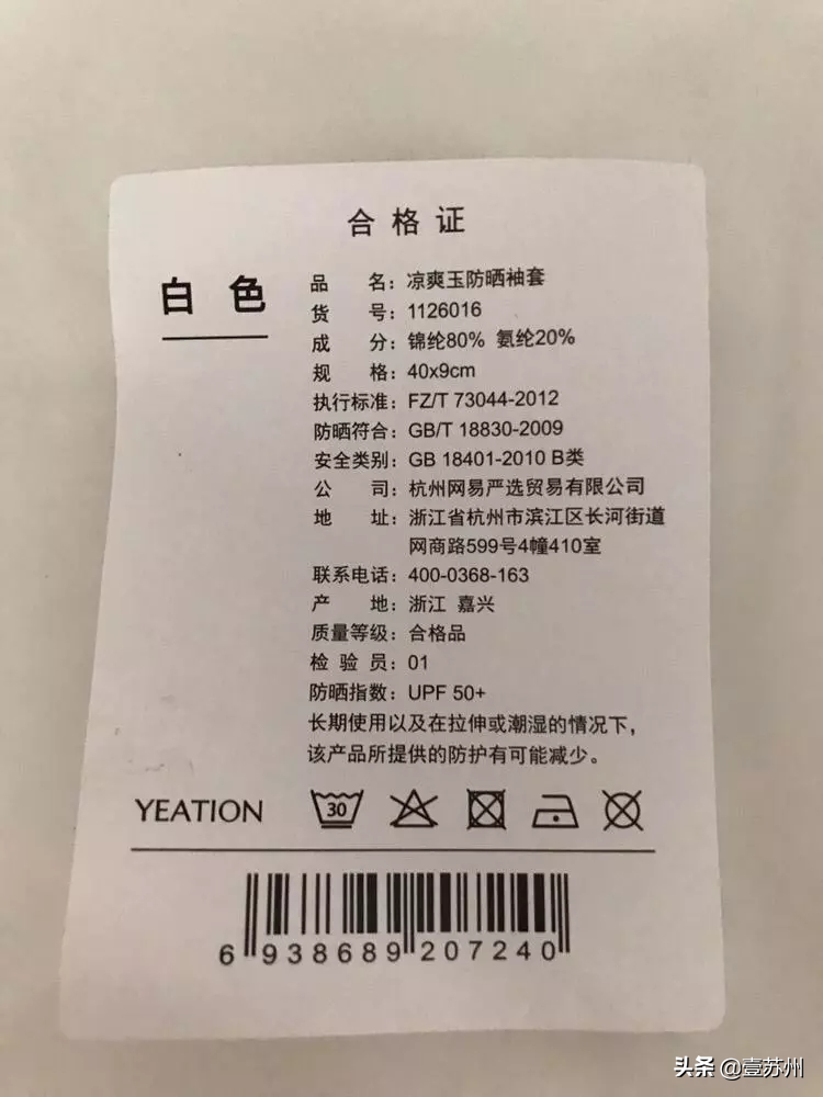 同時,網(wǎng)易嚴選防曬袖的UPF防曬指數(shù)僅23,與其標簽上“防曬指數(shù):UPF 50+”的標識嚴重不符。