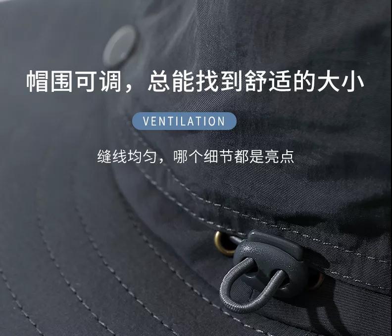 帽子自重輕盈,戴著無(wú)負(fù)擔(dān)。防風(fēng)帽繩能根據(jù)頭部大小自由調(diào)節(jié),狂風(fēng)吹不怕掉落。