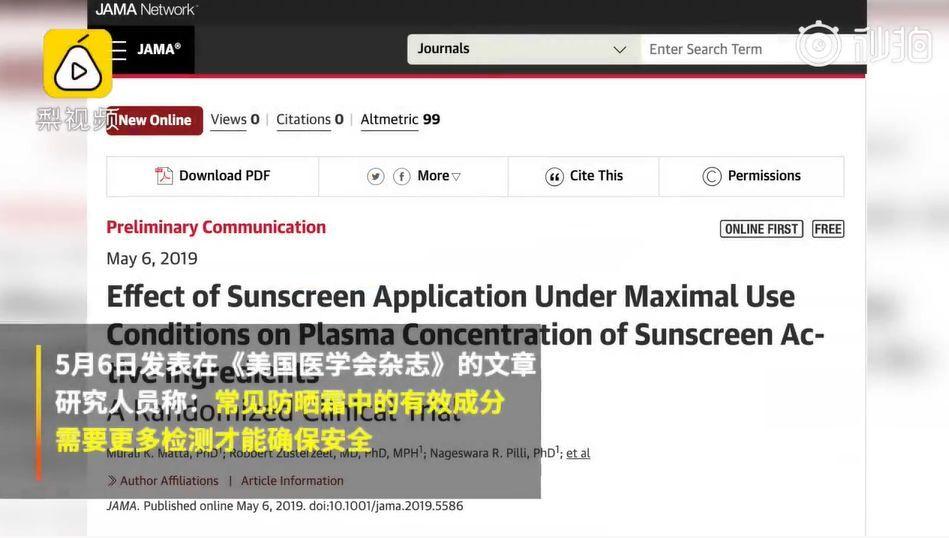 《美國醫(yī)學會雜志》5月6日發(fā)表文章稱:常見防曬霜的有成分需要進一步檢測,還不能。