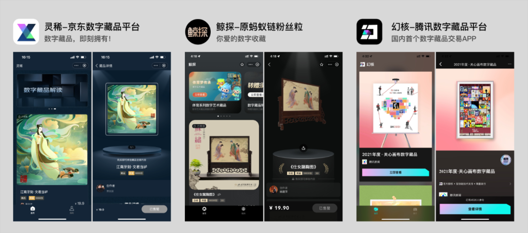 近日,京東也正式上線「靈稀」數(shù)字藏品交易平臺,該平臺所有數(shù)字藏品將由京東云提供的區(qū)塊鏈技術(shù)服務(wù)京東智臻鏈進(jìn)行標(biāo)識。目前國內(nèi)布局?jǐn)?shù)字藏品交易平臺的科技巨頭已經(jīng)有三家:螞蟻旗下的「鯨探」、京東的「靈稀」以及騰訊旗下的「幻核」。除了后者是獨立APP,前兩者均為小程序。