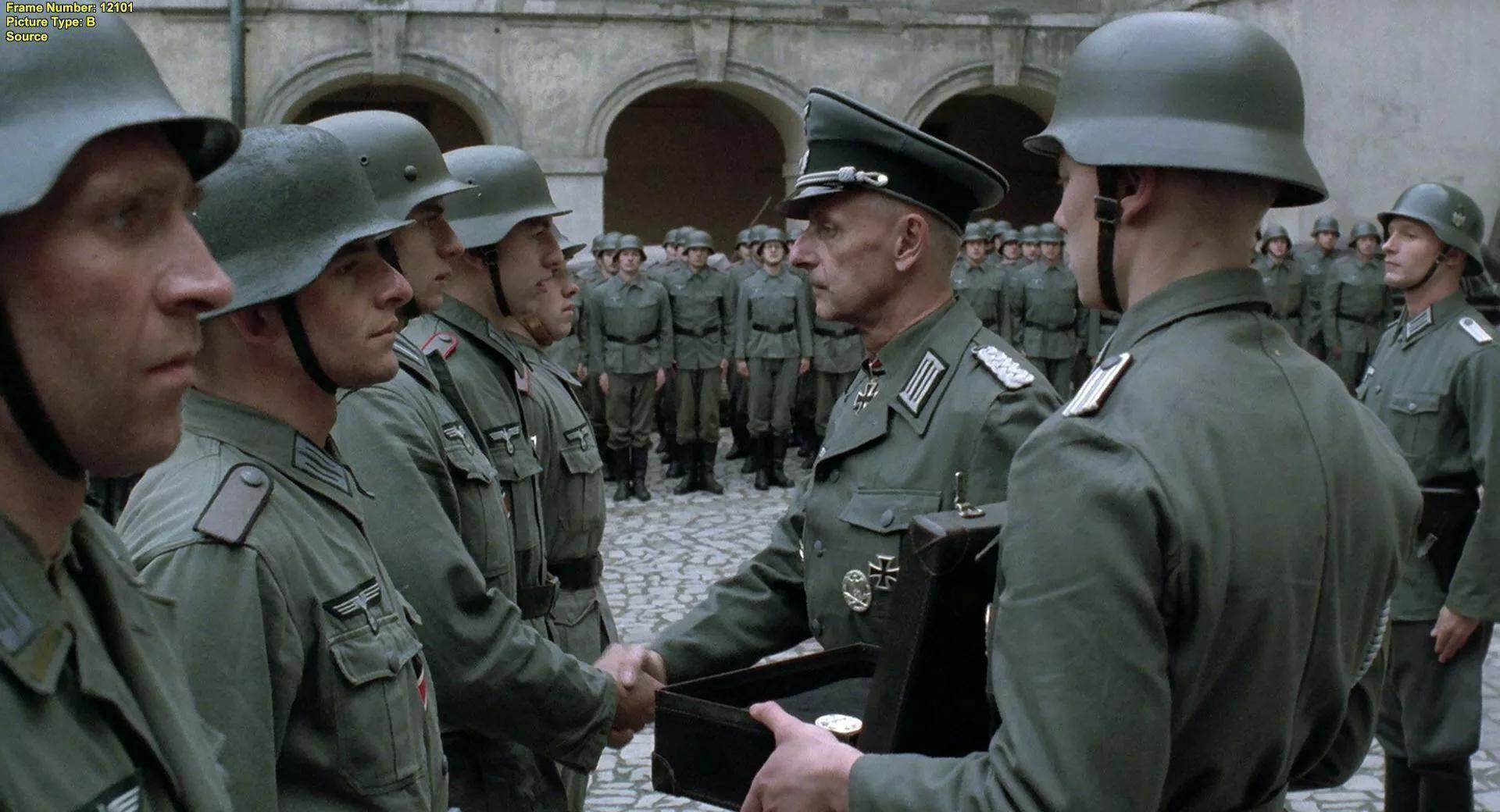 惱怒的海因茨找到首先開槍的德軍士兵一頓痛打,那個(gè)士兵威脅要上軍事法庭控告漢斯中尉通敵,但他很快發(fā)現(xiàn)他面對(duì)的是士兵們敵意的眼神。士兵們已經(jīng)接受了漢斯中尉。