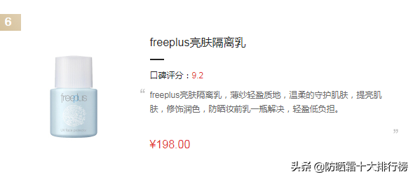 口碑評分9.2,F(xiàn)REEPLUS亮膚隔離乳,薄紗輕盈質(zhì)地,溫柔的守護肌膚,提亮肌膚,修飾潤色,防曬妝前乳,一瓶解決輕盈的負擔。