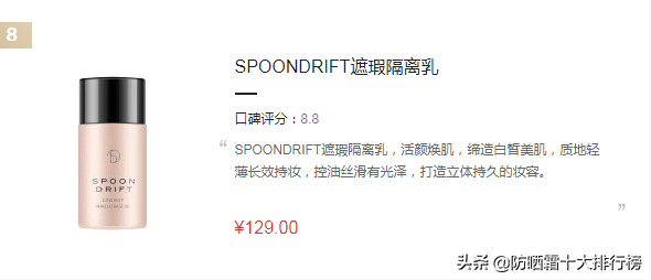 口碑評分8.8,SPOONDRIFT遮瑕隔離乳,活顏煥肌,締造白皙美肌,質(zhì)地輕薄,長持妝,控油絲滑有光澤,打造立體持久的妝容。