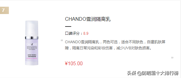 口碑評分8.9,CHANDO雪潤隔離乳,兩色可選,適合不同膚色,自建肌膚屏障,隔離日常污染和彩妝傷害,減少uvb對輻射損害。