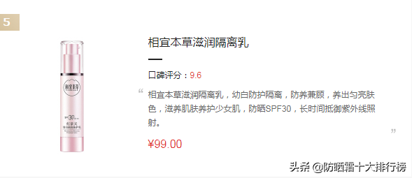 口碑評分9.6,相宜本草,滋潤隔離乳,幼白防護隔離,防養(yǎng)兼顧,養(yǎng)出勻亮膚色,滋養(yǎng)肌膚,養(yǎng)護少女肌。防曬SPF30,長時間抵御紫外線照射。