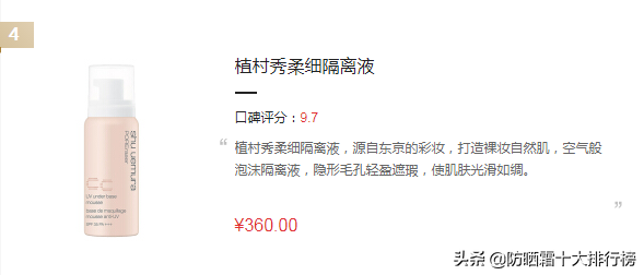 口碑評分9.7,植村秀柔皙隔離乳,源自東京的彩妝,打造裸妝自然肌,空氣般泡沫隔離液,隱形毛孔輕盈遮瑕,使肌膚光滑如綢。