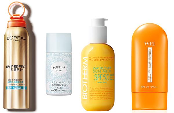 巴黎歐萊雅多重防護(hù)城市水活隔離噴霧、蘇菲娜透美顏飽水控油雙美白日間倍護(hù)防護(hù)乳液、碧歐泉驕陽(yáng)水潤(rùn)防曬乳、蔚藍(lán)之美輕盈舒緩防曬乳(絲芙蘭銷售)