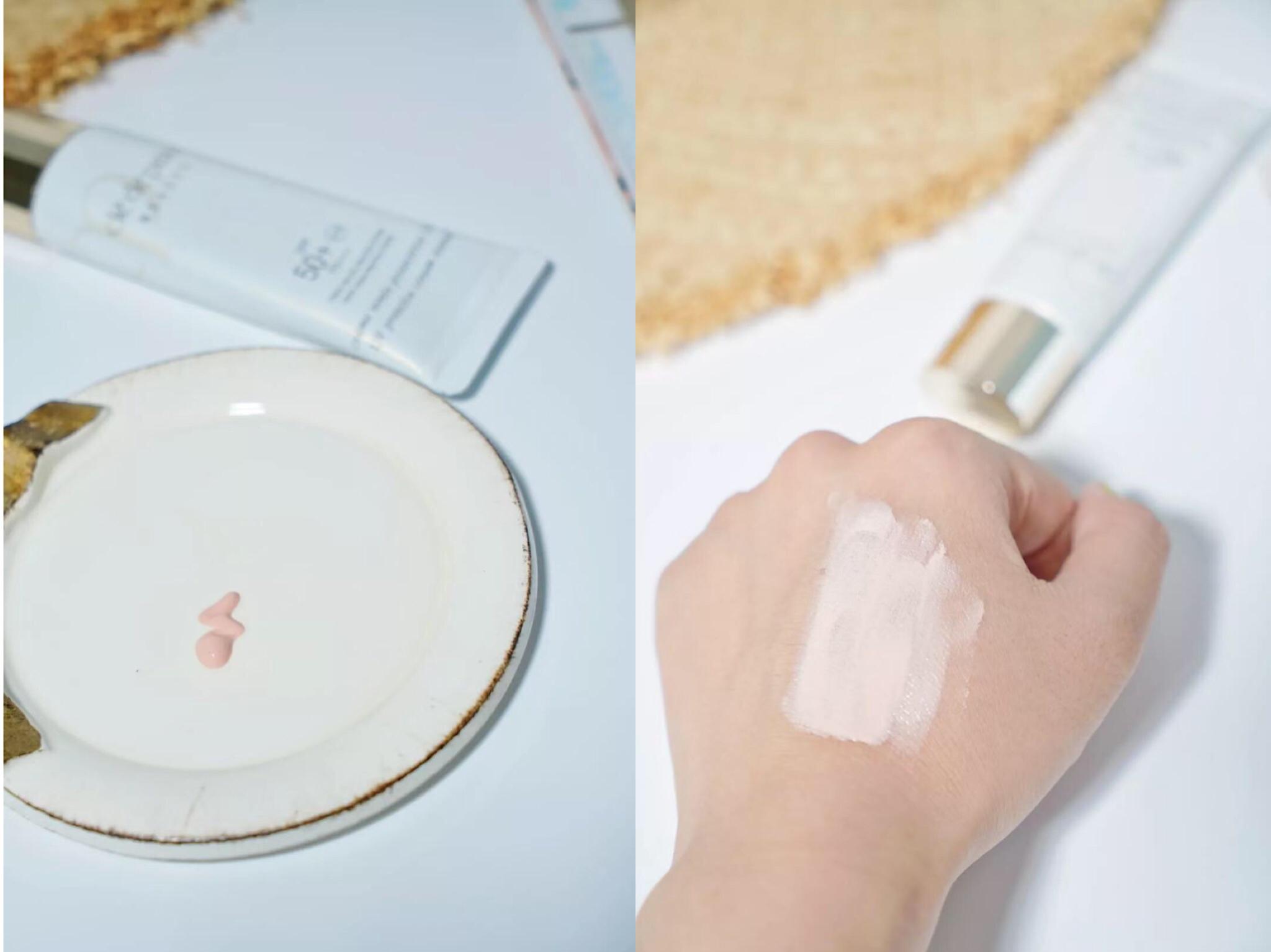 擠出來(lái)它的質(zhì)地是白色乳液狀,很輕薄水潤(rùn)好推開(kāi),自帶一股清香的味道。它的觸感清爽,一點(diǎn)都不粘膩,而且可以看到是有珠光在里面的,帶有一點(diǎn)點(diǎn)的修飾膚色的作用,上粉底前涂它,既能起到防曬的作用,呈現(xiàn)出底妝的光澤感也好好看啊~